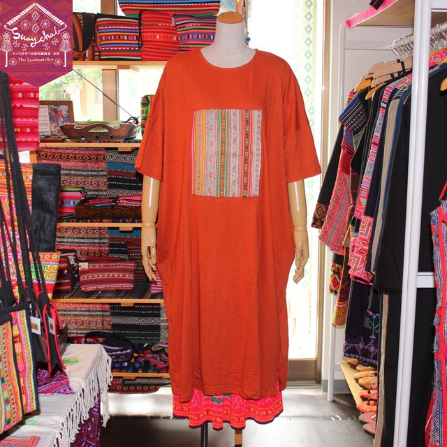 モン族刺繍ワンポイントTシャツです。 半袖Tシャツにモン族刺繍をポイントで施しました。 無地なので刺繍が映えます。 サラッとした生地でサイドが切替になっています。 裏地無し。 一緒にコーディネートしたのは、モン族刺繍プリーツロングスカート[J] 商品はこちら→https://www.suaychai.com/items/79912218 ※お洗濯は手洗いをおすすめ致します。単品洗いをお願いします。 一度洗ったものを使用していますが素材の特性上、摩擦により色移りすることがありますので、お取り扱いにはご注意ください。 ◆サイズ◆ ・着丈 約60cm ・裄丈 約42cm ・裾幅 約56cm ・身幅 約58cm ◆素材◆ ・コットン 98% ・ポリウレタン 2% (型番cl-1763)
