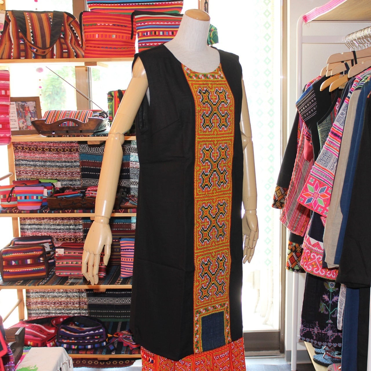 ヘンプ生地をベースにモン族刺繍を施したロングワンピースです。