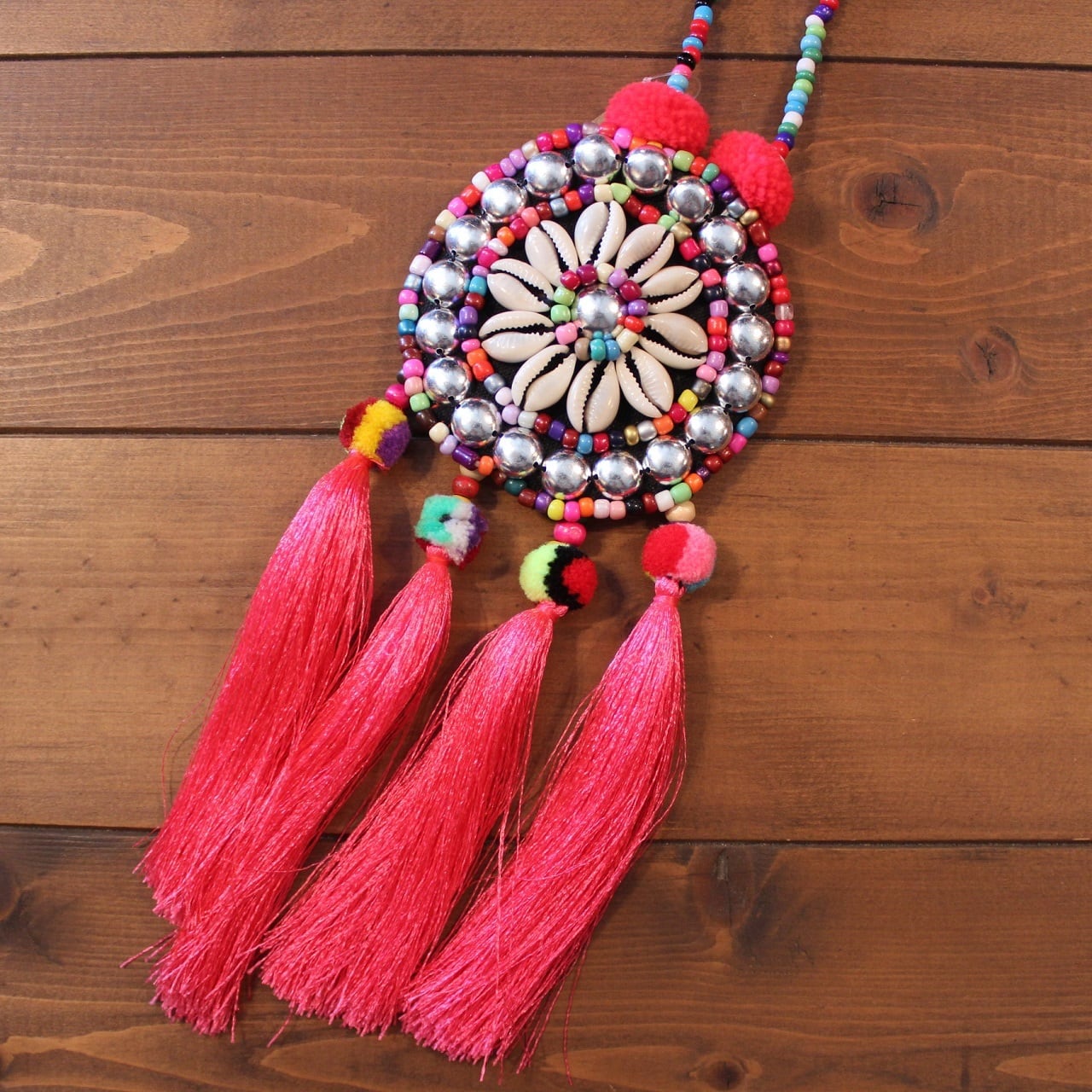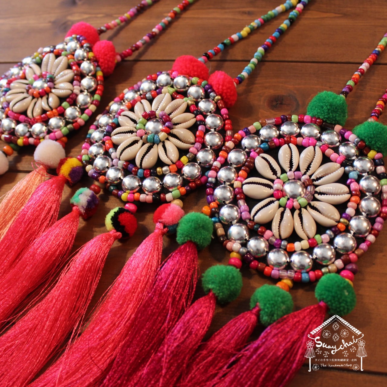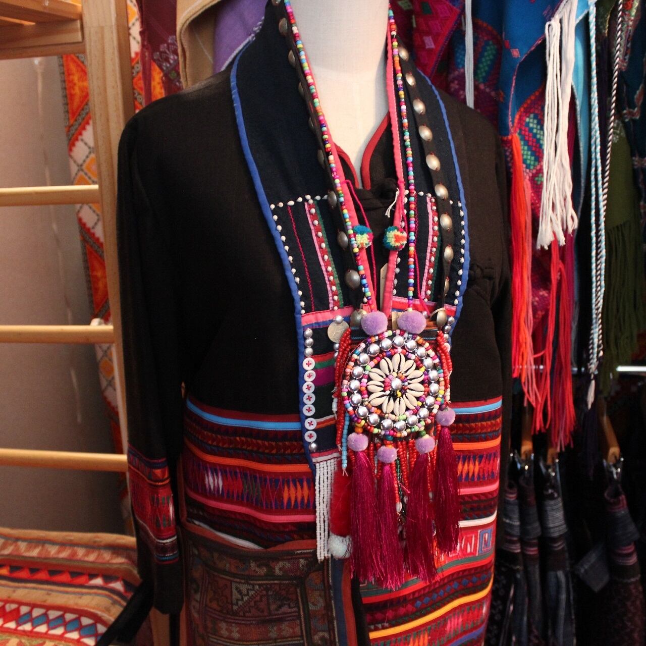 アカ族の民族衣装に使われているアルミの玉飾りを施したネックレスです。