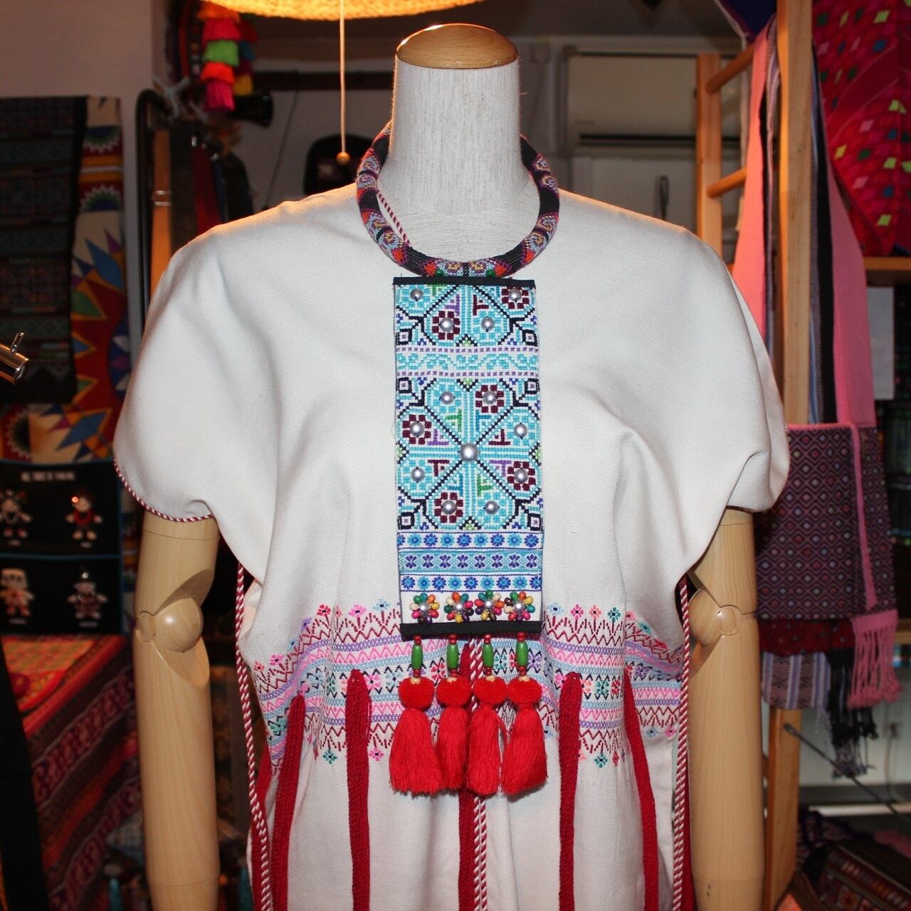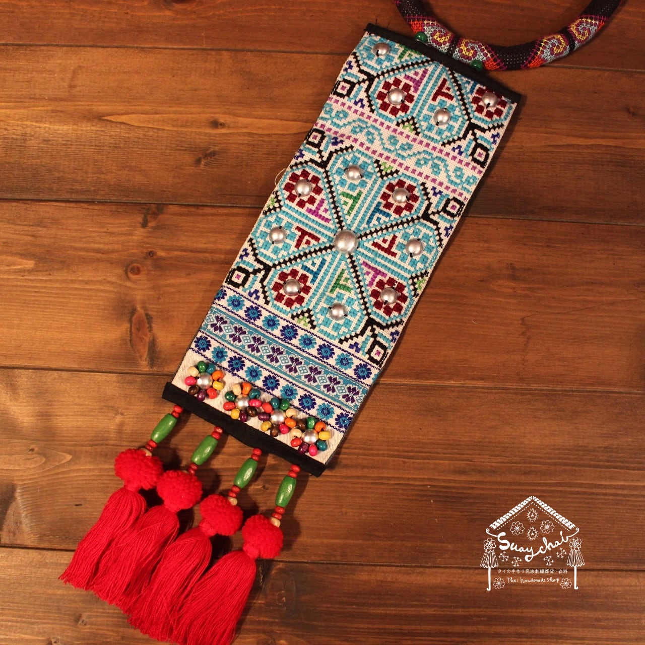 ビーズやフリンジ、アルミなどの飾りがついています。