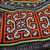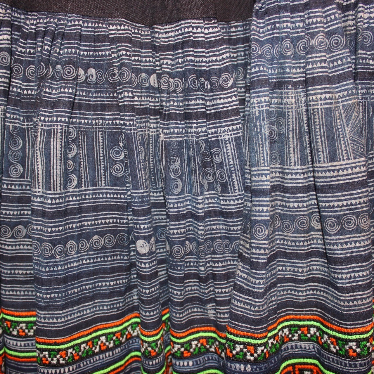 上部に黒のコットン生地、ろうけつ染め、裾の方にモン族刺繍が施してあって綺麗です。