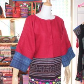 前部分にベトナムモン族刺繍、袖口にろうけつ染めが施してあるトップスです。
