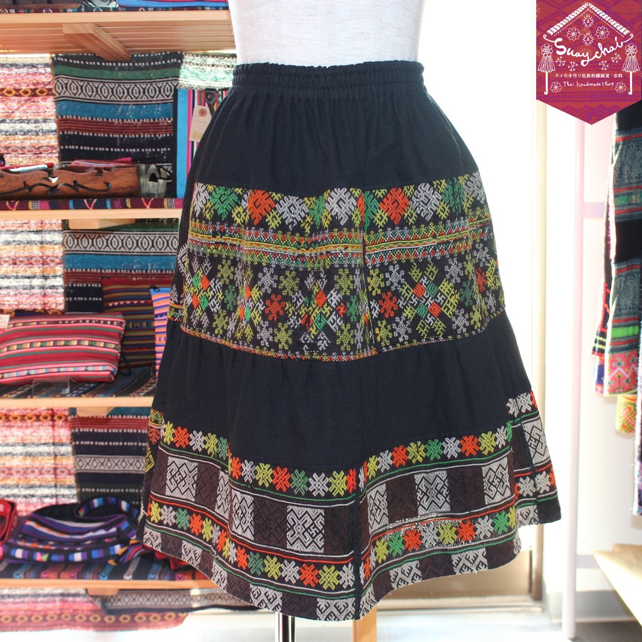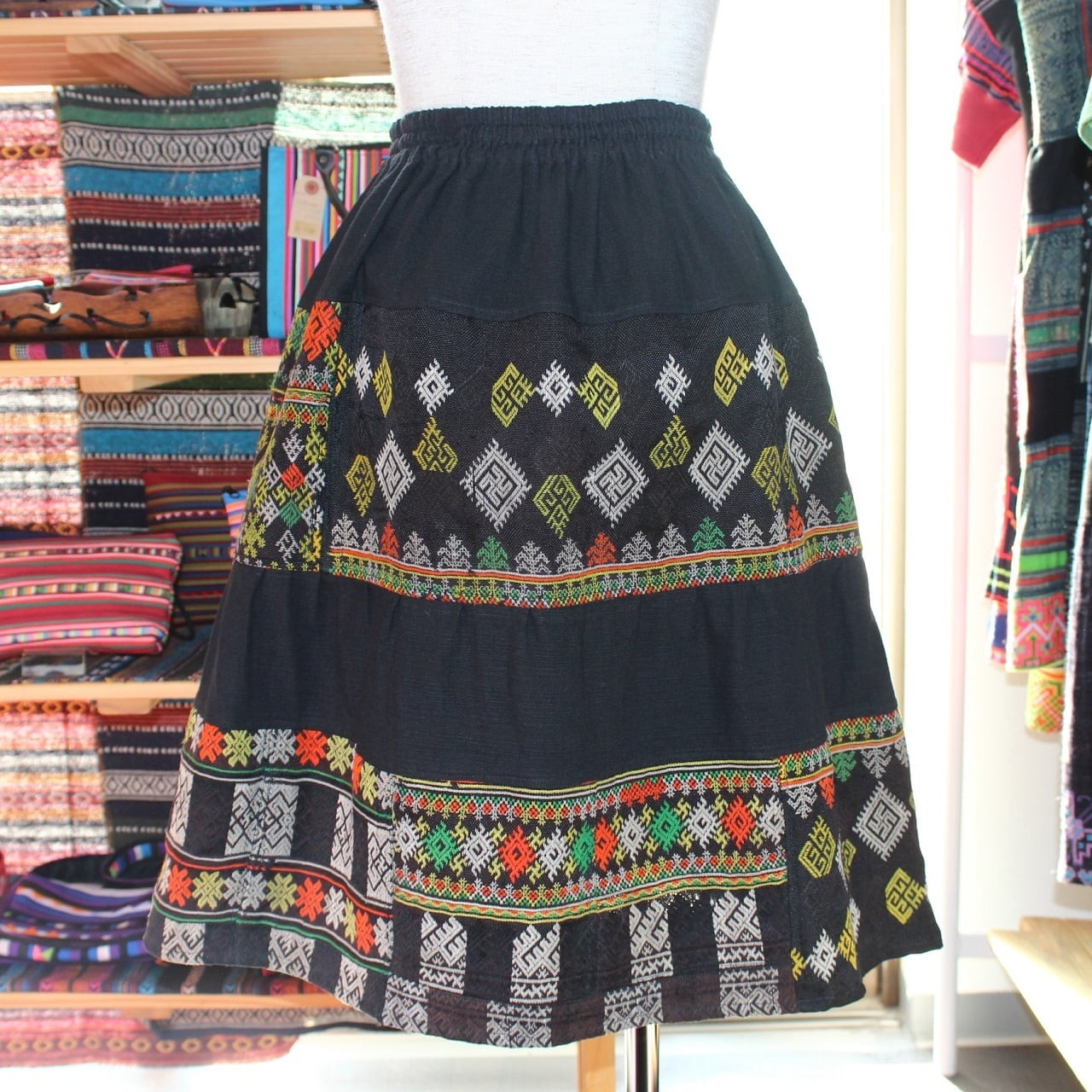 色々なヤオ族刺繍を使った切り替えスカートです。