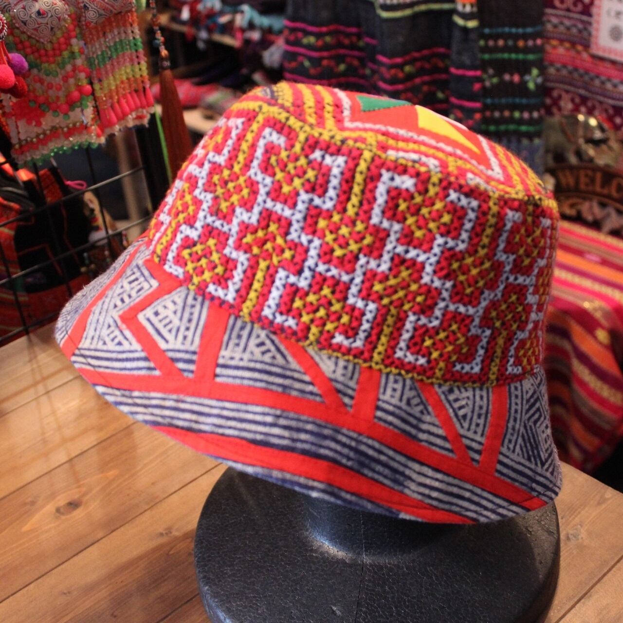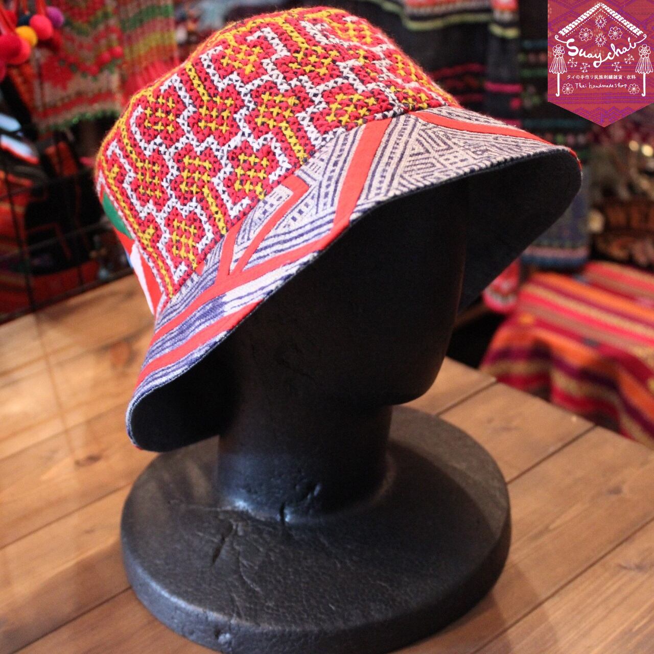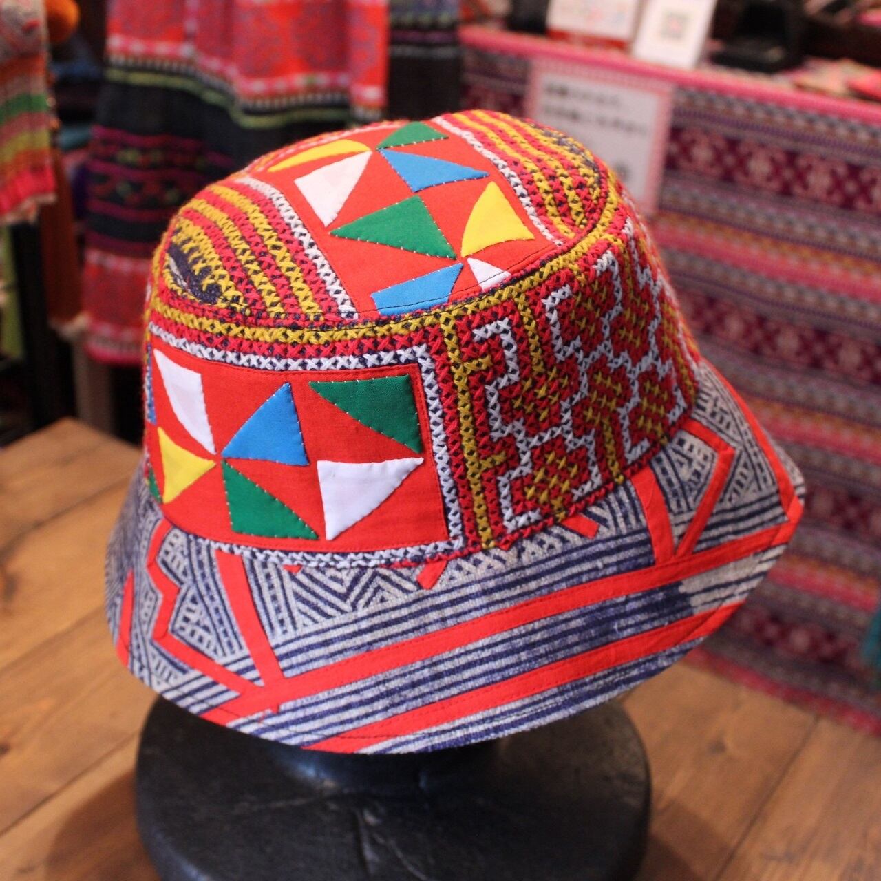 モン族刺繡とろうけつ染めの帽子です。