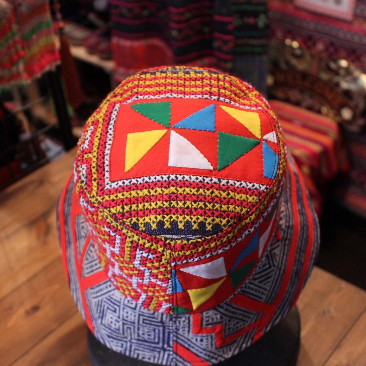 モン族刺繡とろうけつ染めの帽子[A]